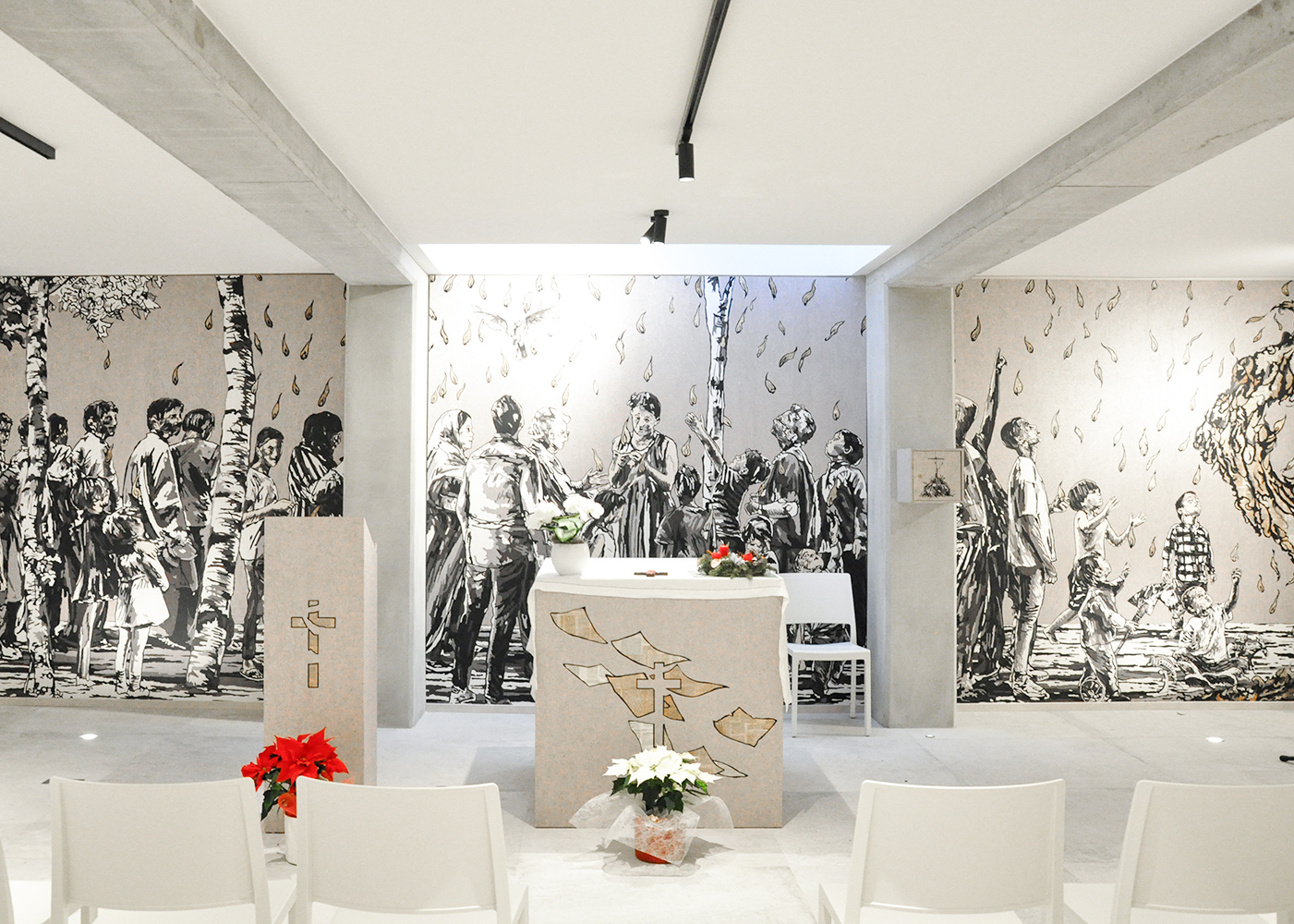 L’ensemble comprend une chapelle décorée avec une œuvre artistique de renom, une salle polyvalente et d’autres salles qui servent de lieu de rencontre et d’activité de catéchèse, mais également pour activités privées et associatives.