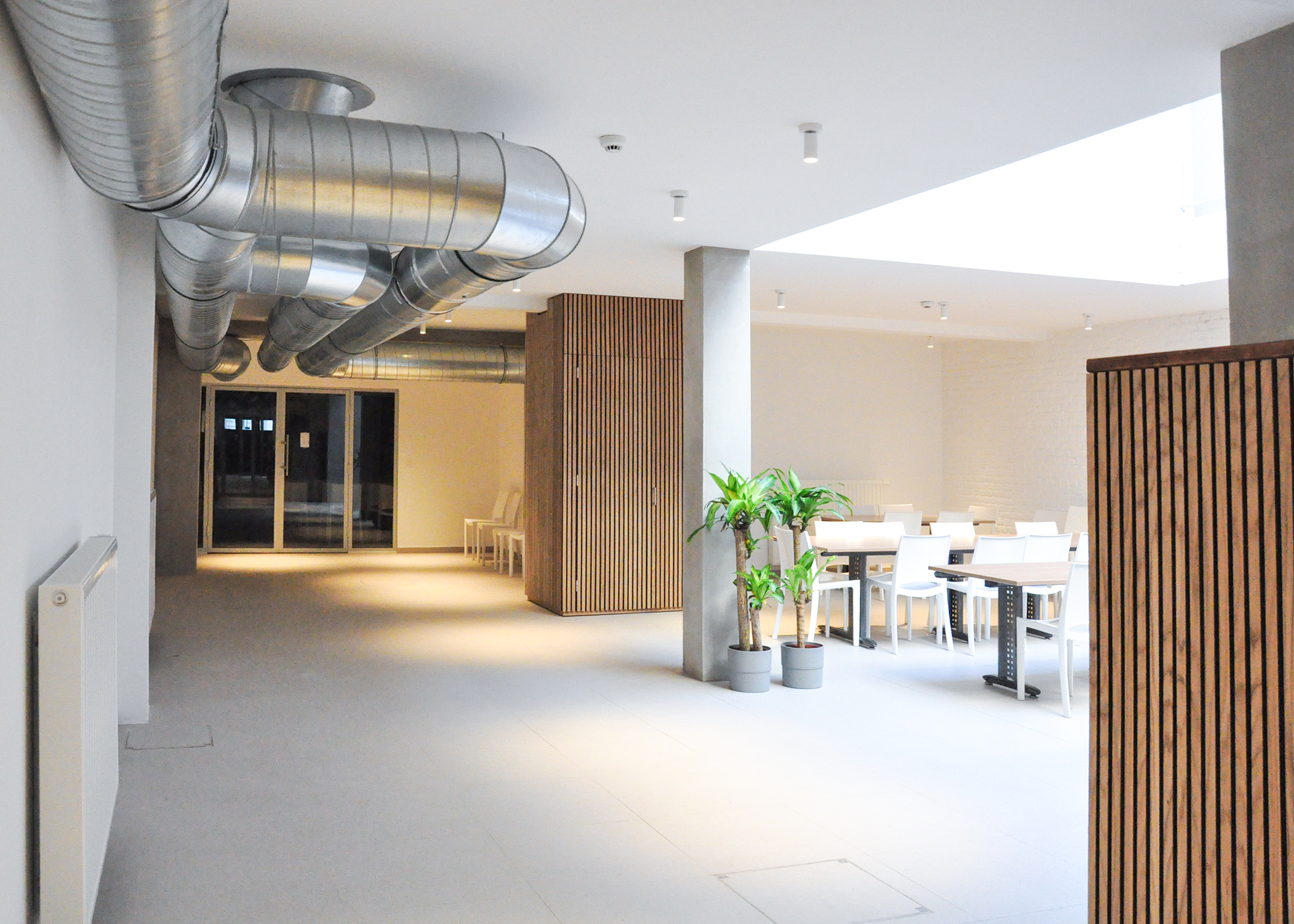Le site du Foyer Catholique Européen, qui se trouve dans la Commune  d’Etterbeek, a été rénové de manière assez importante entre 2020 et 2022. Les travaux ont permis de réunir deux parties séparées sur la même parcelle : un bâtiment à l’avant (maison en style classique du début 1900) et une partie à l’arrière datant 1920. La liaison a été réalisée à travers une nouvelle grande verrière. Des nouveaux espaces ont été créés à chaque étage et les travaux d’isolation ont permis d’utiliser au mieux l’espace des combles. Le nouvel escalier central sous la verrière relie les espaces des étages principaux. Un ascenseur nécessaire pour les personnes à mobilité réduite a été inséré près de l’escalier.